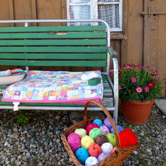 ReplyDeleteVad härligt det ser ut vid din bänk, med ditt vackra lapptäcke, alla färgglada garner och de fina blommorna! Jag förstår att du njuter av dina stunder på bänken!