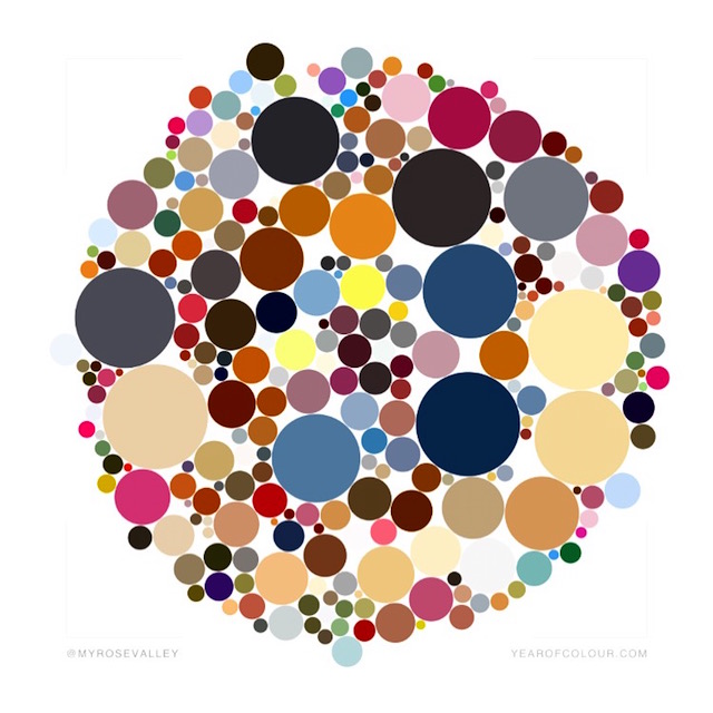 I sit down for a tea and a bit of crochet, need to check something on the phone and end up Instagram scrolling, getting inspired (again :o !!!) to make some white Maybelle flowers like @barbro.i.gson has done. I'm very much into white right now; snowy white, crochet white, flower white, clean and crisp white... Maybe it is the need to neutralize my surroundings post Christmas... You get it... I also try a color play app found in the feed of @emilyquinton: Year Of Colors based on my Instagram 2017. Love it! That polka dot illustration really show my true color love of blue, pink, red, rustic wood and neutrals... Spot on!!!