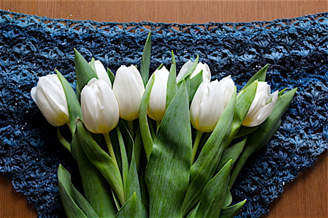 8. Beautiful! The moment I saw the blue shawl (it looks like you are making a shawl to me) and the white tulips, I took a deep breath and relaxed. What is that beautiful stitch you are doing?